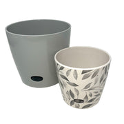 Self-Watering Plant Pot Set of 2 5" Gray Leaves & 7" Gray Solid