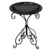 28" Antique Brown Fiber Clay Birdbath on Black Metal Base