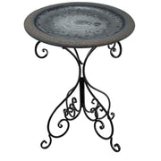 28" Dove Gray Fiber Clay Birdbath on Black Metal Base