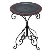 28" Slate/Wine Fiber Clay Birdbath on Black Metal Base