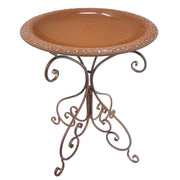 28" Terra Cotta Fiber Clay Birdbath on Antique Bronze Metal Base