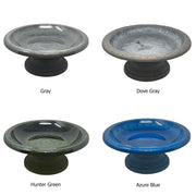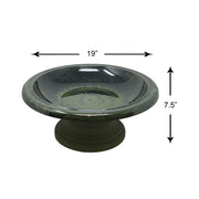 Fiber Clay Birdbath with a shorter base - perfect for harmonizing with your landscape! This birdbath is unlike anything you've ever seen with the beauty of ceramic and the durability of fiber clay making it impact-resistant it will add elegance and function to any garden. We recommend storing in an enclosed area or indoors during cold temperatures. The smooth gloss finish on the bowl provides UV protection as well as easy clean-up and reduced staining. 3-piece threaded construction quick and easy to set up. The perfect gift for the bird lover on your list! Made of 70% clay 25% plastic and 5% fiber. A 2.5" deep bowl holds the perfect amount of water. Due to dye lot changes the actual product color may vary from the images shown. 19"D x 7.5"H 6.5 lbs