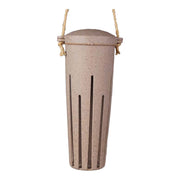 This unique Peanut Bird Feeder is made with Nut Husks. The Earthy Sustainable line processes agricultural waste blending it with resin. A lot of time energy and water goes into growing crops yet most of the plant goes unwanted and would normally be burnt releasing harmful CO2 into the environment. Instead the waste material is processed to create Earthy sustainable products. None of the ingredients are grown specifically for Earthy. The unwanted parts of commercially-farmed crops are used to make our feeders. These products are frost proof and suitable for outdoor and indoor use. Lifespan 2-3 years. Dimensions are 9.25" x 3.25"Dia.