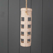 This unique Suet Ball Bird Feeder is made with Chaff. The Earthy Sustainable line processes agricultural waste blending it with resin. A lot of time energy and water goes into growing crops yet most of the plant goes unwanted and would normally be burnt releasing harmful CO2 into the environment. Instead the waste material is processed to create Earthy sustainable products. None of the ingredients are grown specifically for Earthy. The unwanted parts of commercially-farmed crops are used to make our feeders. These products are frost proof and suitable for outdoor and indoor use. Lifespan 2-3 years. Dimensions are 9"H x 2.5"Dia.