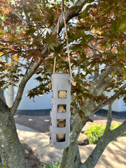 This unique Suet Ball Bird Feeder is made with Strawf. The Earthy Sustainable line processes agricultural waste blending it with resin. A lot of time energy and water goes into growing crops yet most of the plant goes unwanted and would normally be burnt releasing harmful CO2 into the environment. Instead the waste material is processed to create Earthy sustainable products. None of the ingredients are grown specifically for Earthy. The unwanted parts of commercially-farmed crops are used to make our feeders. These products are frost proof and suitable for outdoor and indoor use. Lifespan 2-3 years. Dimensions are 9"H x 2.5"Dia.