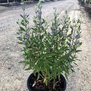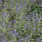 Dark Knight Bluebeard is a low mounding deciduous shrub with aromatic dull green lace shaped foliage with silvery undersides. Profuse clusters of fragrant deep purplish blue flowers bloom on new wood from summer into fall. Flowers best in full sun and loamy well-drained soils. Tolerates some drought.