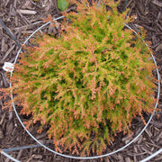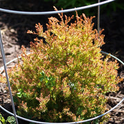 Fire Chief Globe Arborvitae is a slow-growing global dwarf evergreen shrub with bright gold new growth in spring that matures to dark green and deep red fall color. Best grown full sun and well-drained soils. Drought tolerant once established.