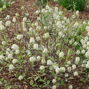 Legend of the Small Fothergilla is a dwarf deciduous shrub with profuse blooms and brilliant fall display. The leathery blue green foliage turn various shades of yellow, orange, and red-purple in fall. The bottlebrush-like spikes densely packed with fragrant white flowers bloom through spring. Blooms best in rich, moist well-drained acidic soils. Legend of the small is very shade tolerant and deer resistant.