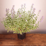Walker’s Low Catmint is a compact herbaceous perennial with aromatic grey-green foliage. The loose whorls of deep lavender-blue flower spikes that bloom in late spring into fall are sterile. In southern states grows best with afternoon shade and dry, well-drained soils. Has good drought tolerance.