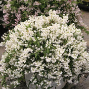 Yuki Snowflake Deutzia is a slow-growing deciduous shrub that can be used for groundcover. Its medium green leaves earn purple hues in fall. Tiny fragrant white flowers on upright panicles cover the shrub for two weeks in early spring. Blooms best in full sun and moist, and well-drained soil.