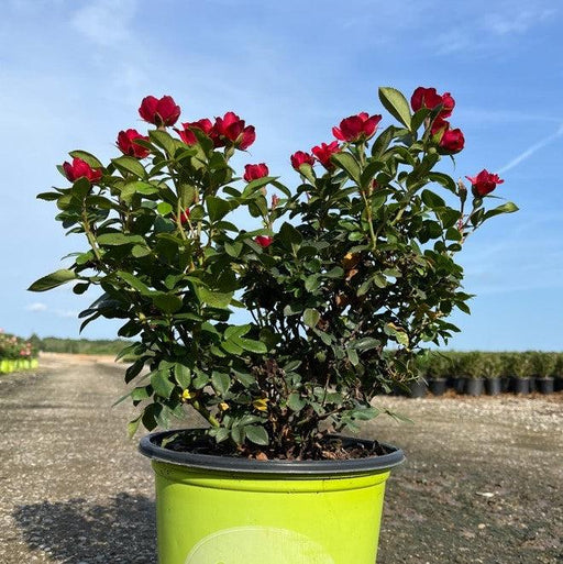 Petite Knock Out Rose is a miniature upright deciduous shrub with dark purplish-green foliage. Abundant clusters of small non-fading fire red flow...