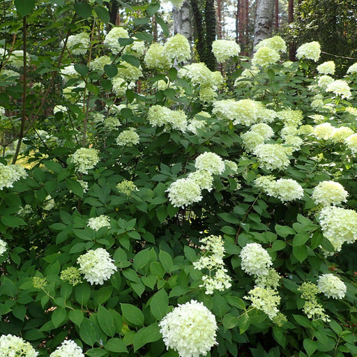 Limelight Hydrangea is a fast-growing upright deciduous shrub noted for its dense cone-shaped panicles and mixed yellow and green fall color. Thes...