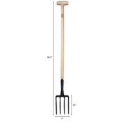 More than a tool it's an heirloom! This 4 Prong Garden/Potato Fork is extremely sharp and sturdy. Use it in any area too small for a tiller. Great tool for aerating beds and for digging lifting and turning soil. Tines slide into the ground effortlessly. This tool is guaranteed a lifetime! 10.5"L x 6.75"W Total: 47"L