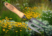 More than a tool it's an heirloom! Forged fork is well balanced with comfortable proportions and is great for cultivating in smaller areas. Constructed of tempered boron steel to hold a very sharp edge with ash hardwood handle. Ideal for aerating clay soil. This tool is guaranteed a lifetime! Head: 5"L x 3"W Total: 10"L 0.5lbs