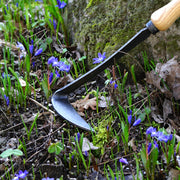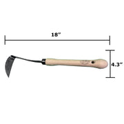 Large double-sided blade. Great for weeding under mulch. Grip with two hands. The longer handles make these a great choice for seniors or for working in a raise bed. Head: 5.5" Length x 4.25" Width Total: 18.5" Length 0.6 Lbs.