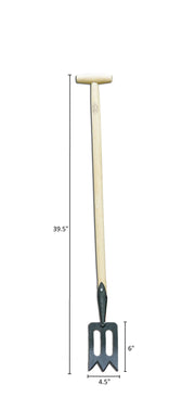 More than a tool it's an heirloom! Made from high quality tempered boron steel the blade of the Mini Spork will not bend even with heavy duty use. Slots in the blade give the tool a spring effect. The unique cutting edge of the Spork makes it easy to cut through the lawn or soil. Great for digging in confined areas. Also works well for splitting large perennials for transplanting. Patented design. 40" length relieves strain on your back. This tool is guaranteed a lifetime! Head: 6"L x 4.5"W Total: 39.5"L 1.75lbs