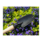 DeWit 2-Pointed Trowel works like a standard trowel but the 2 sharp points break up soil quickly and easily. Great for tough soil and clay. Made from hardened boron steel and heat-treated for strength it is the perfect gardening companion. Extra stong "welldone" design makes it one of the strongest trowels in the world. Handle is made of hardwood ash and harvested from environmentally responsible FSC-certified forests. Manufactured in Holland this tool is guaranteed a lifetime! Head: 5.5"L x 3"W Total: 12.25"L 0.5lbs