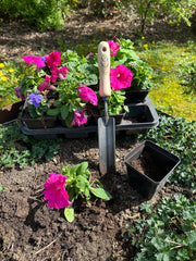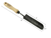 More than a tool it's an heirloom! Great for transplanting in narrow confined spaces. Trowel is sharpened the entire length of the blade to enable deep digging. Ideal transpanting tool. Heavy duty blade is 3 mm thick making gardening chores quick and easy. Constructed of tempered boron steel with ash hardwood handle. This tool is guaranteed a lifetime! Head: 5"L x 1.5"W Total: 14"L 0.5lbs