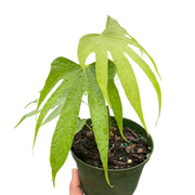 Description: Native to the tropical rainforests of Central and South America, the Anthurium Fingers is an attractive evergreen perennial known for its unique, elongated, finger-like leaves. These glossy, dark green leaves grow in a rosette formation and can reach impressive lengths. Thriving in warm, humid conditions and partial to full shade, this plant is commonly used as an ornamental houseplant, bringing a touch of the tropics indoors. Its striking foliage makes it a popular choice for adding texture and interest to any indoor or outdoor garden setting.