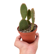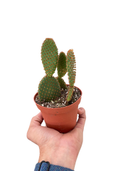 - Description: The Bunny Ear Cactus is a popular succulent that belongs to the Opuntia genus and is native to Mexico. The plant is named for its distinctive flattened, pad-shaped stems that resemble bunny ears. The stems are covered in soft, white spines that are harmless to the touch and give the plant a unique, fuzzy appearance. The Bunny Ear Cactus produces bright yellow flowers in the spring and summer that are followed by edible red fruit. The plant is easy to care for and can be grown indoors or outdoors in a sunny, well-draining location. It prefers dry soil and can tolerate periods of drought.