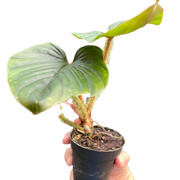 Description: Philodendron sp. ‘Paraiso Verde’ is glossy and deep green with reddish backsides, and new leaves emerge with a deep pink hue. This plant is very hairy and is said to resemble a serpent's head.