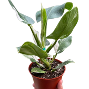 • Description: The Philodendron 'White Wizard' is a rare, tropical, low-maintenance houseplant that can grow up to 4 ft tall and 2 ft wide. It's a hybrid philodendron that's prized for its white and green variegated leaves and stems, which can range from minty white to very white. The plant has elliptical to spade-shaped leaves that eventually taper towards the last third of the leaf, and it grows viningly, needing support to climb