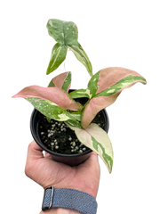 - Description: This Tricolor Syngonium plant also knows as the Arrowhead plant is the perfect addition to any houseplant collection. Native to several different countries in Latin America and even some states in the US. This amazing plant has green leaves with an added pink and white pattern to the leaves. It can even grow pretty large length.