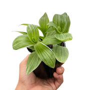 - Description: A beautiful trailing houseplant with striking green and white variegated leaves that cascade down from hanging planters or pots on shelves. Loves bright, indirect light and humidity. Pinch back regularly to encourage bushier growth.