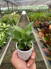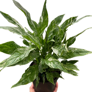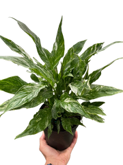 - Description: Spathiphyllum Domino, commonly known as Peace Lily, is a tropical evergreen plant prized for its stunning white flowers and lush foliage. This popular houseplant produces large, glossy leaves that can grow up to a foot in length, giving it a lush and tropical appearance. The unique feature of the Spathiphyllum Domino is the contrast of its dark green leaves with white veins, which create a stunning domino effect. The flowers are creamy white and appear on long, slender stems that rise above the foliage, adding an elegant touch to any indoor space. The Peace Lily is known for its air-purifying qualities, making it a popular choice for bedrooms, living rooms, and offices. With proper care, this hardy plant can live for many years, bringing joy and beauty to your home or office.