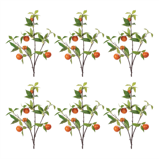 Infuse your home with vibrant, orchard-fresh charm using this set of 6 Orange Fruit Foliage Branches. Each 34" stem showcases bright orange fruit n...