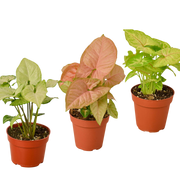 3 different Syngonium in 4 inch pots. Syngonium are some of the easiest plants to take care of and are a great addition to any home or office.