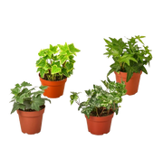 4 different English Ivy plants in 4 inch pots. English Ivy are some of the easiest plants to care for and are a great addition to any home or office.