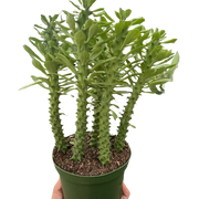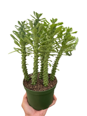 • Description: A stout perennial succulent herb with long, cylindrical stems, with prominent spine-tipped tubercles and fleshy sickle-shaped deciduous leaves. Flowers small with a red rim-like gland and enclosed in two fused greenish-white bracts with lovely purple mottling. At yet very few species of this Genus are to be found in collections but this one is one of the older species described during the early part of the twentieth-century Euphorbia succulent varieties are easy to grow and are suited to any well drained soil in full sun. They grow well when there is a layer of brick and charcoal pieces, on top of which sandy loam soil is spread. They need little maintenance. Young plant are happy growing indoors.