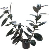 - Description: Native to India and Southeast Asia, the Ficus elastica 'Burgundy' is perfect for those looking for a small indoor tree with stunning dark, shiny leaves. In the wild, it grows up to around 200ft tall, and its roots are used in India to form living bridges. It won't do well in low light spaces, so place in bright indirect light. Water to keep soil moist at all times. Ficus elastica is a source of latex that is toxic to the skin, and poisonous if taken internally, so pet-owners and those allergic to latex should be cautious.