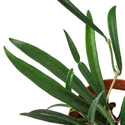 • Description: The String Bean Hoya produces 2-3" wide clusters composed of sweetly fragrant 1/2" wide white waxy star-shaped flowers with a small maroon eye. The long narrow deep green glossy foliage adorns the long trailing stems and give the plant its common due to their resemblance to string beans.