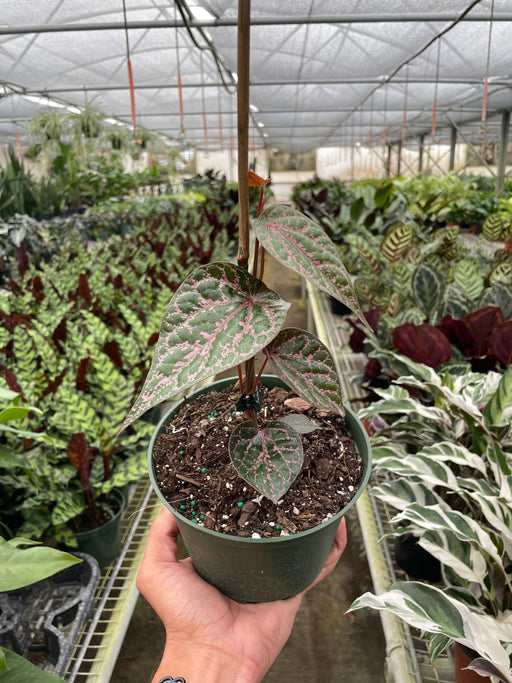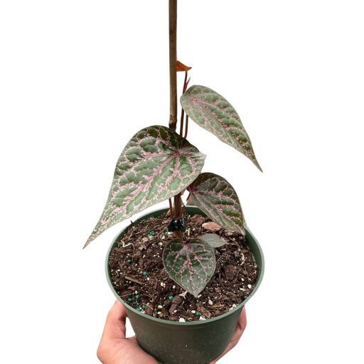 Botanical Name: Piper crocatum Common Names: Celebes Pepper, Ornamental Pepper, Ornate Pepper Vine, Red Betel, Marmorpeppar Description: The ...