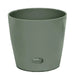 Worlds first Bamboo Fiber self-watering pot this 10" Sage Solid Round self-watering pot is made from sustainable biodegradable all natural Bamboo Fiber and corn starch. Plants thrive in this natural Bamboo Fiber pot that is plastic free. The soil is better aerated by the unique water well in the base allowing better nutrient management helping the plants grow healthy and strong. These pots should be treated like ceramic suitable for use in hot or cold climates inside or outside. At initial planting water from the top until water is just below the overflow. Then periodically check the water level in the base and add water to the well from the bottom access or from the top of the pot. The soil draws water up from the well as needed using capillary action just like a wick. No more overwatering strong healthy plants is the result! Everyone gets a "green thumb" growing in bamboo pots and just by keeping water in the well! When you are finished with your pot just break it up and put into your compost bin. Over time the material will degrade back to nature.