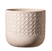 This is more than just pottery it's ceramic art. Featuring Viennese wickerwork in ceramic relief each piece is crafted in Germany using natural native clay. The pottery is completely waterproof with pots fired in the kiln for five hours at 1872 degrees Fahrenheit. All SK pottery is produced using 100% rainwater and any clay residue is recycled back into production. These pots are designed without drainage holes to prevent damage to furniture. Each tray contains five pots and weighs 5.0 lbs.