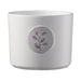 More than pottery... it's ceramic art. Made in Germany with natural native clay. 100% waterproof pottery. 130000 unit daily capacity. Pots are in the kiln for 5 hours at 1872 degree Fahrenheit. 100% rainwater is used in production of all SK pottery. Clay residue is recycled back into production. Pots do not have draining holes so no worry of damage to furniture. Cylinder shape with small botanic motifs. 5 pots per tray 4.6 lb. tray weight