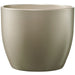 6.3" Gray Beige Metallic Basel Elegance Indoor Ceramic Pot. 4 pots per tray must order in tray quantities. 100% waterproof. Made in Germany with 100% rainwater and natural native clay. No drainage holes so no worry about damage to furniture. Just drop in - no need to replant. 4 pots per tray 6.4 lb. tray weight