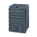 The Eco Master composter turns kitchen waste into rich nutritious compost. Constructed from 100 percent recycled UV-resistant polypropylene so it's good for the environment. Great features: one piece feed opening lid with wind protection and a big flap with handle for convenient withdrawal of compost. Ideal ventilation requires little space. Easy and convenient assembly without tools. Made in Germany. space. 25.6"L x 23.6"W x 35.5"H 79 Gal.