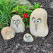 This adorable Family of Boulder Angry Birds would be a great addition around your garden or in your home. They also make perfect gifts! They are made from Natural Granite Boulder with inlaid quartz eyes. Since each boulder pet is hand carved it is unique in shape and color. This 4 piece set includes a 3-4" 1-2lb 6" 3-4lb 8" 15-17lb & 12" 32-34lb Angry Bird. Height and weight are approximate.