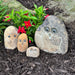 This adorable Family of Boulder Owls would be a great addition around your garden or in your home. They also make perfect gifts! They are made from Natural Granite Boulder with hand carved accents and smooth features. Since each boulder pet is hand carved it is unique in shape and color. This 4 piece set includes a 4" 1.5-2.5lb 6" 8-9lb 8" 10-11lb & 12" 47-49lb Boulder Owl. Height and weight are approximate.