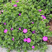 Maz Fei Bloody Cranesbill is a low-growing semi-evergreen herbaceous perennial with trailing stems holding rich, deeply lobed green foliage that turns crimson after the first frost. Brilliant magenta purple flowers bloom come late spring. Flowers best in full sun and moist, well-drained soils.