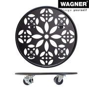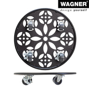 Wagner Round Plant Caddy in timeless cast iron insteel with a flower design. Twin wheel smooth-rolling casters glide easily over carpets and floors without marring or tipping. Casters are equipped with brakes for safe positioning. Water resistant finish so it can be used indoors or out. The Wagner company located in southern Germany near the Black Forest has earned a reputation for exceptional quality. With over 40 years experience in design and manufacturing their products are rigorously tested for quality safety and durability. 220 lbs. capacity 11.8"D x 2.25"H 1.8 lbs.