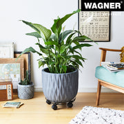 Wagner Round Black Wire Plant Caddy makes moving plants a breeze. Twin wheel casters glide over carpets and floors without marring or tipping. The Wagner company located in southern Germany near the Black Forest has earned a reputation for exceptional quality. With over 40 years experience in design and manufacturing their products are rigorously tested for safety and durability. 132 lbs. capacity 11.8"D x 2.5"H 1.1 lbs.