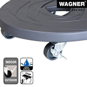 Wagner Round Plant Caddy in stone with a mat gray finish and swirl design. Twin wheel smooth-rolling casters glide easily over carpets and floors without marring or tipping. Casters are equipped with brakes for safe positioning. Water resistant finish so it can be used indoors or out. The Wagner company located in southern Germany near the Black Forest has earned a reputation for exceptional quality. With over 40 years experience in design and manufacturing their products are rigorously tested for quality safety and durability. 176 lbs. capacity 11"D x 3"H 5.2 lbs.
