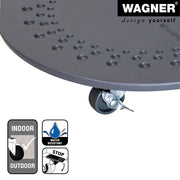 Wagner Round Plant Caddy in stone with a mat gray finish. Twin wheel smooth-rolling casters glide easily over carpets and floors without marring or tipping. Casters are equipped with brakes for safe positioning. Water resistant finish so it can be used indoors or out. The Wagner company located in southern Germany near the Black Forest has earned a reputation for exceptional quality. With over 40 years experience in design and manufacturing their products are rigorously tested for quality safety and durability. 220 lbs. capacity 13.4"D x 3"H 7.8 lbs