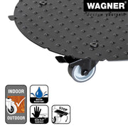 Wagner Large Round Black Aluminum Plant Caddy in a fresh contemporary design. 15" diameter with a load capacity of 331 lbs! Made of solid rust-free diamond plated aluminum. Equipped with soft equipment casters providing protection on all surfaces won't scratch or mar floors. Two casters are fitted with a strong brake for easy and safe positioning. Surface design prevents pots from slipping. Suited for use in protected outdoor areas do not permanently expose to humidity. Made in Germany. The Wagner company located in southern Germany near the Black Forest has earned a reputation for exceptional quality. With over 40 years experience in design and manufacturing their products are rigorously tested for quality safety and durability.