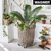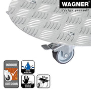 Wagner Large Round Aluminum Plant Caddy in a fresh contemporary design. 15" diameter with a load capacity of 220 lbs! Made of solid rust-free diamond plated aluminum. Equipped with soft equipment casters providing protection on all surfaces won't scratch or mar floors. Two casters are fitted with a strong brake for easy and safe positioning. Surface design prevents pots from slipping. Suited for use in protected outdoor areas do not permanently expose to humidity. Made in Germany. The Wagner company located in southern Germany near the Black Forest has earned a reputation for exceptional quality. With over 40 years experience in design and manufacturing their products are rigorously tested for quality safety and durability.